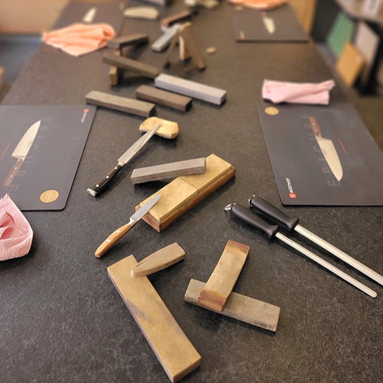 Sie wollen lernen, wie man zuhause Messer richtig schleift? Oder suchen Sie nach einem interaktiven Geschenk für Freunde und Familie? Unsere Schleifkurse sind eine beliebte Beschäftigung mit Mehrwert!